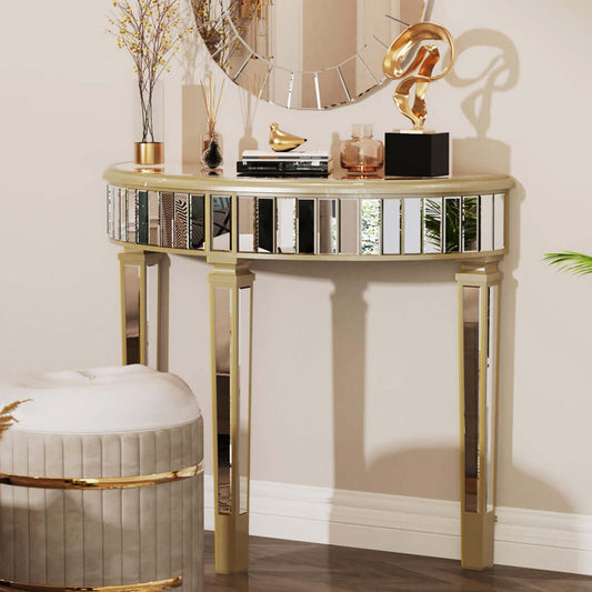 P&P Heavy Duty Glossy Mirrored Makeup Vanity Table Semi-C...