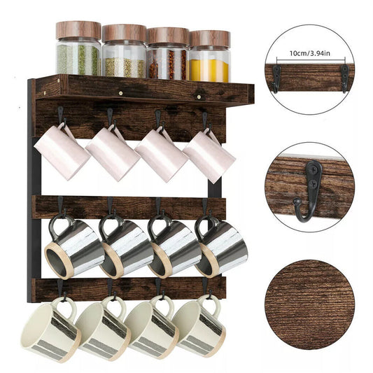 P&P Heavy Duty Wall Mount Coffee Teacup Mug Rack Wood 12 ...