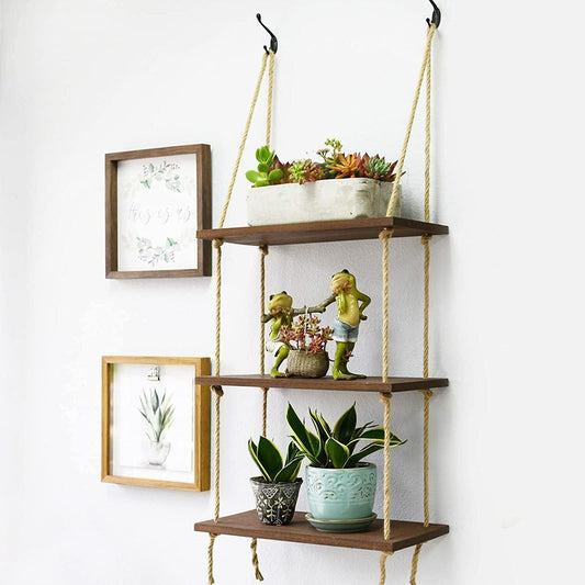 P&P Heavy Duty Wall Hanging Rope Shelf Wooden Swing Stora...