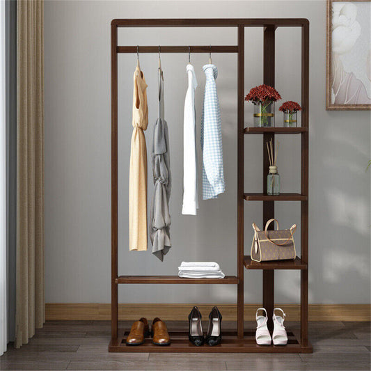 P&P Industrial Vintage Wood Clothes Stand Open Wardrobe w...