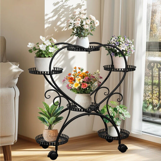 P&P Large 6 Pots Metal Plant Stand Heart-shaped Flower Po...