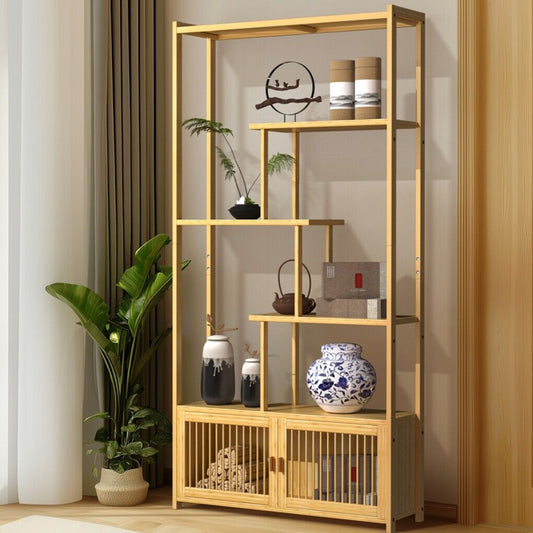 P&P Large Bamboo Storage Rack Natural Wood Cupboard Shelv...