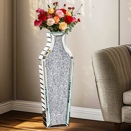 P&P Luxury Mirrored Floor Flower Vase Silver Crushed Diam...