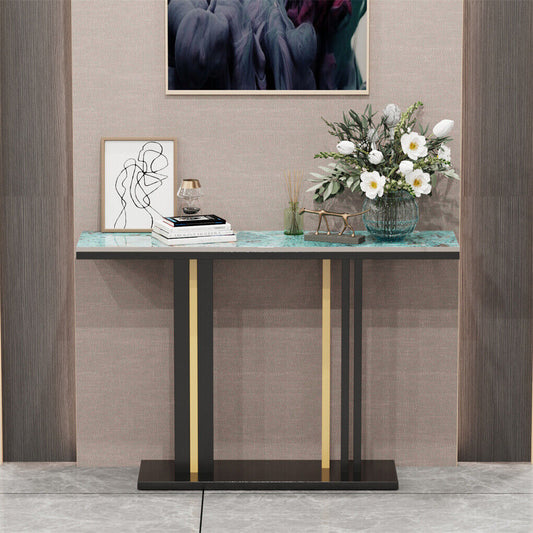 P&P Modern Accent Faux Marble Console Table Black Metal F...