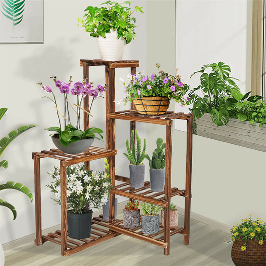 P&P Multi-Tiered Wood Plant Stand Cabinets Flower Pot Dis...