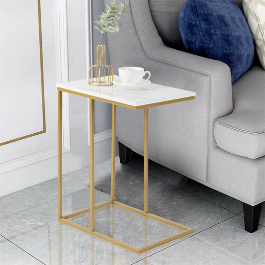 P&P Solid Real Marble End Table Gold Metal C Shaped Frame...