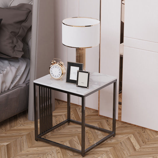 P&P Sleek White Marble Side Table Sofa End Table Bedside ...