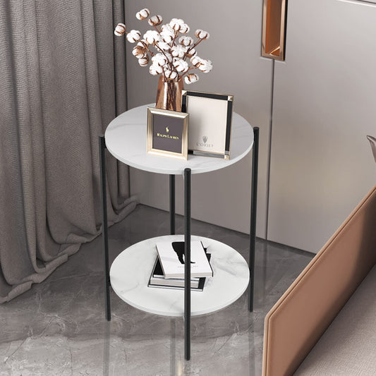 P&P Tow-layer Round Side End Table Coffee Table with Soli...