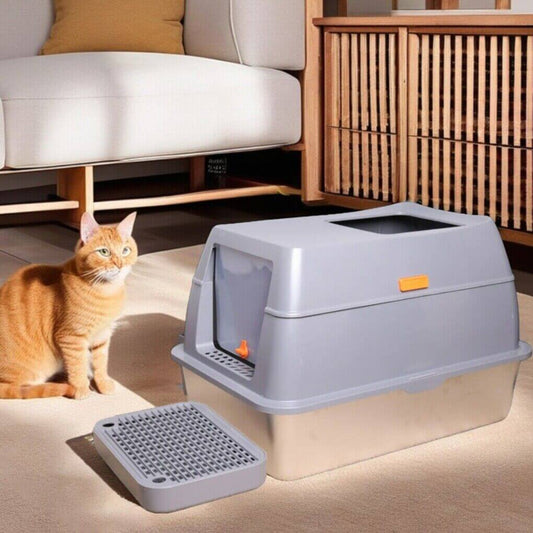 P&P XXL Stainless Steel Cat Litter Box High Sided Enclose...