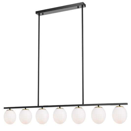 TFS 7LT PENDANT 7x25wE27 L:1500 H:1750 BLACK&OPAL GLASS R...