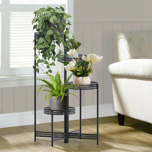 Vintage Corner Flower Pot Stand with Metal Shelves(L)