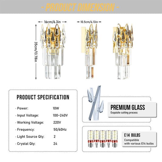 Gold Crystal Wall Sconce with Adjustable Lighting