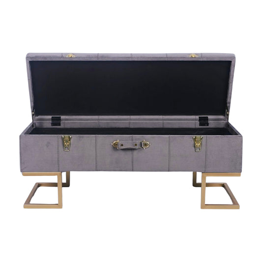 KD Storage Ottoman in Velvet Grey in Gold iron base