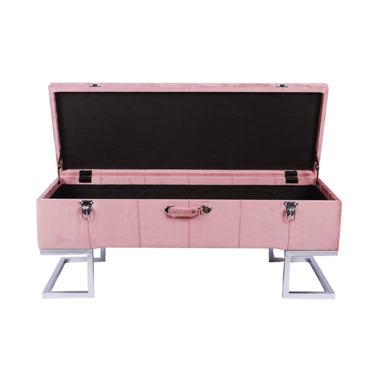 KD Storage Ottoman in Velvet Pink in silver iron base