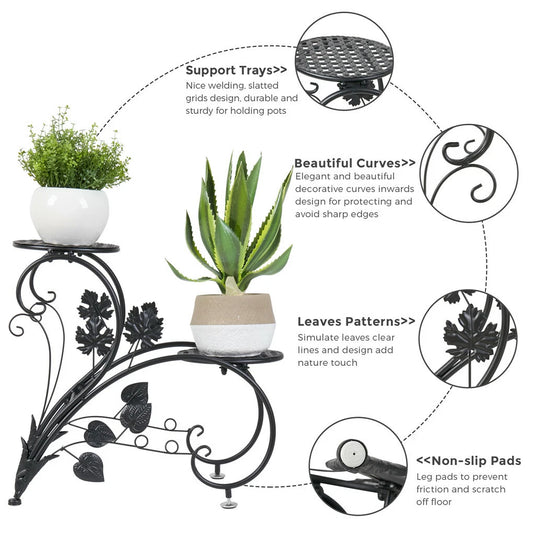 Metal Flower Pot Stands Set of 2 for Indoor Outdoor(Black)