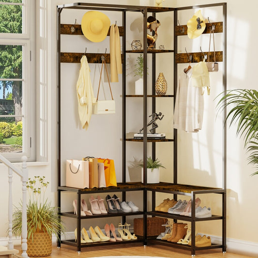 P&P 6-in-1 Entryway Hall Tree with Bench and Shoe Storage...