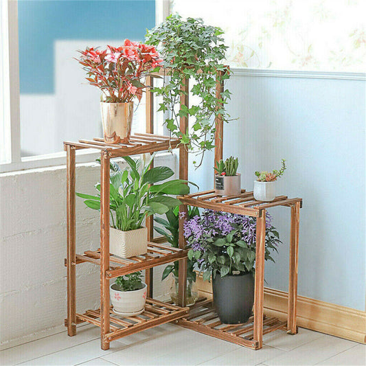 P&P 6-Tier Wall Corner Pine Wooden Plant Stand Flower Lad...