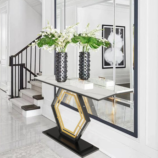 Console Table 2-Tier Beside Sofa Table with Faux Marble T...
