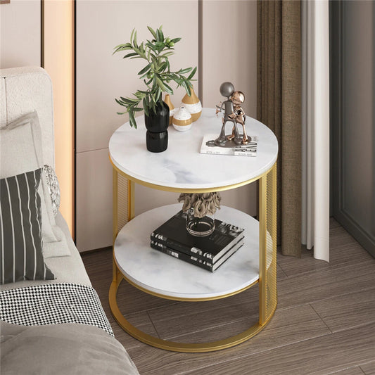 Delicate 2 Tier Gold Side End Table Marble Round Accent F...