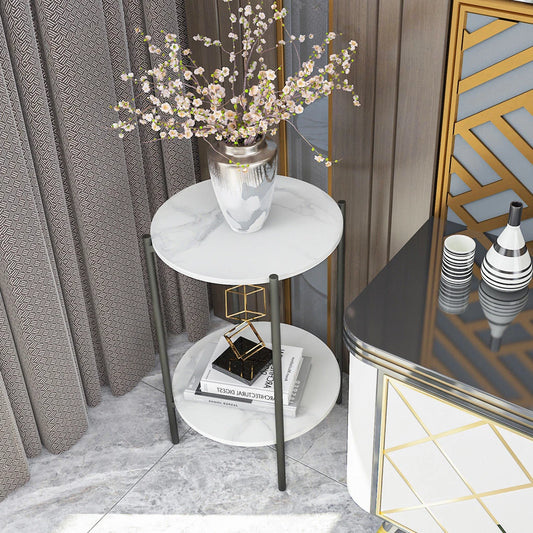 Round Dual Tier Marble Coffee Side Table Sofa Table Nordi...