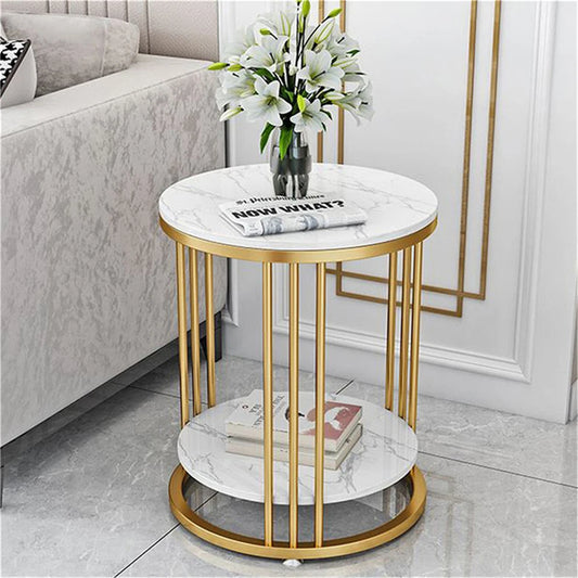 Real Marble Sofa Side Coffee Table Double Tiers Round Nes...