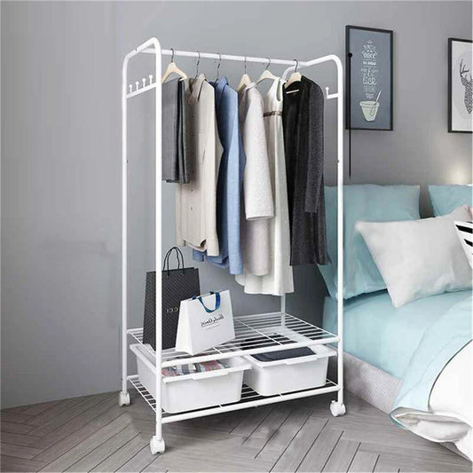 2 Tier Rolling Metal Garment Stand With 2 Side Hooks