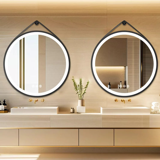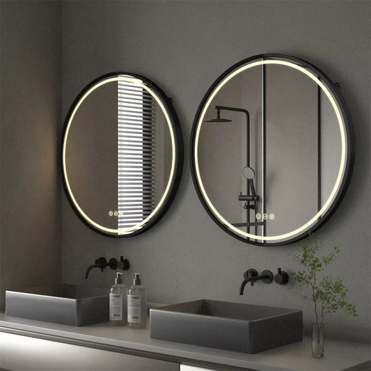 Round LED Bathroom Mirror with Anti-Fog & Black Frame