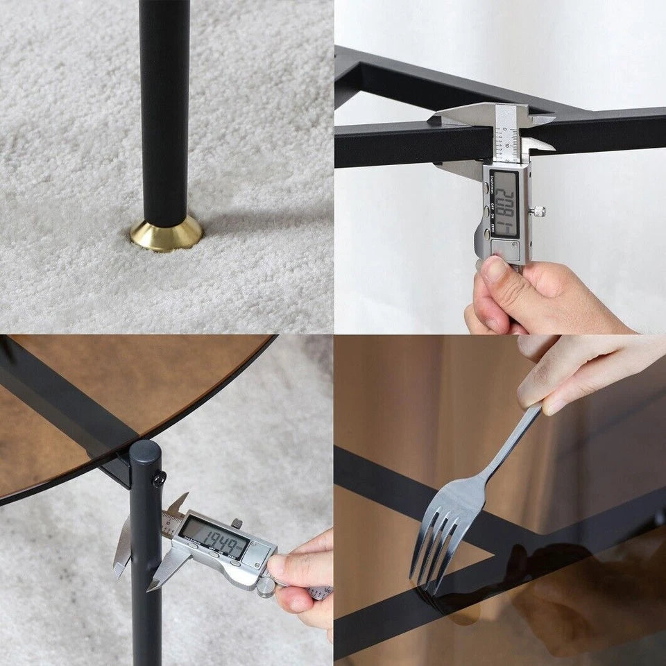 HIGH QUALITY LIVING ROOM CENTER TABLE Combining with the thicken sturdy tempered glass tabletop and metal base, this 80cm coffee table possesses a powerful strength, wear resistance, high temperature resistance, scratch resistance, anti-oxidation, waterproof, perfect for daily use, maximum loading up to 50 kg