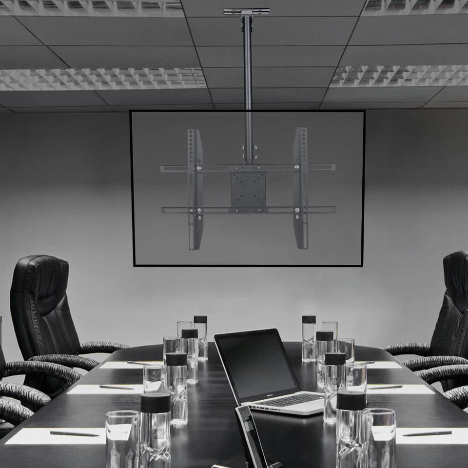 - Adjustable ceiling plate: The ceiling mount can be adjusted between 0-90 . It can attach to a flat ceiling, a sloped ceiling, or the wall as well, allowing you to enjoy watching TV in a more comfortable, ergonomically correct position.