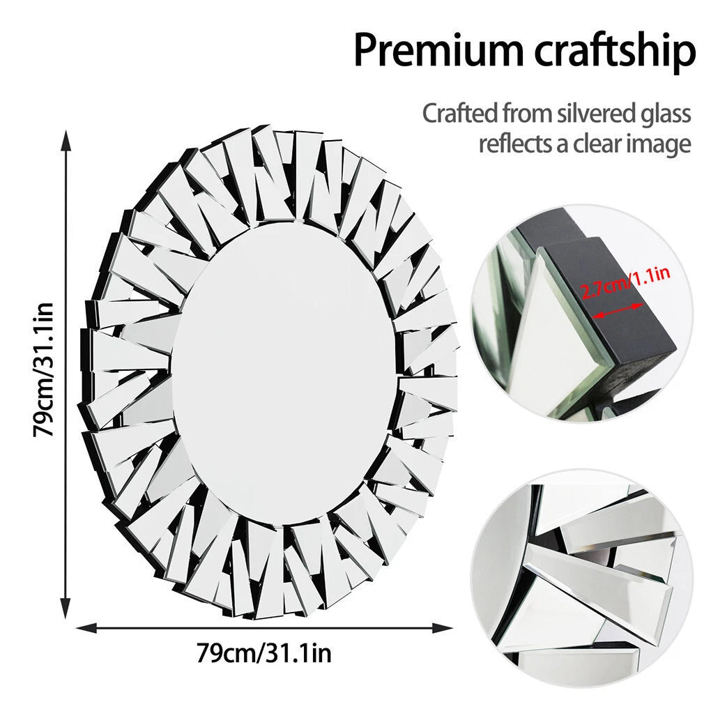 Beveled Edge: All little glass pieces around the wall mirror come with beveled edge, so they catch the light and look really gorgeous and stunning. The main mirror is beveled around the edge giving this an attractive look too. The reflective nature of the round mirror is awesome and the design is unlike any you have seen on a mirror before. The frameless sides looks so modern, exceptional.