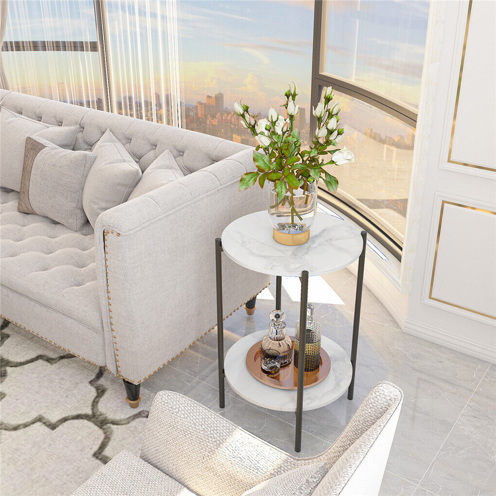Durable Structure This round end table is made of new design sintered stone tabletop + sleek black painted metal frame, beautiful and clean look, anti-scratch than MDF, easy to clean it, more stable and reliable, fits nicely in the space of your home