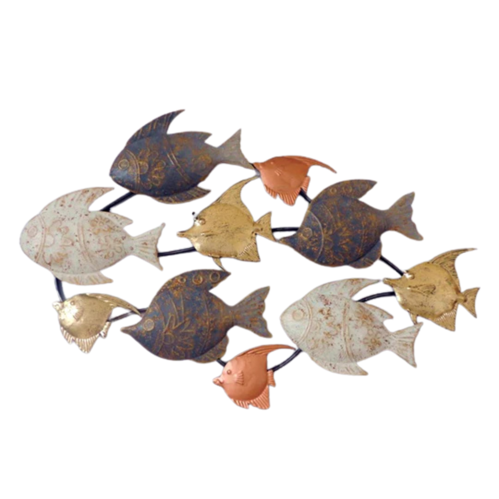 Bring a calming ocean-inspired touch to your home with this Silver School of Fish Metal Wall Decor. The elegant arrangement of fish creates a sense of movement and adds a serene coastal feel to any room. Crafted from premium 2.5mm thick metal, it features a strong frame for reliable support and smooth edges for safe handling. The UV-resistant finish helps maintain colour vibrancy even in direct sunlight, while the anti-rust back paint ensures lasting durability. Designed with a cut-down package for easier transport and storage, this piece combines beauty, practicality, and craftsmanship in one decorative work.