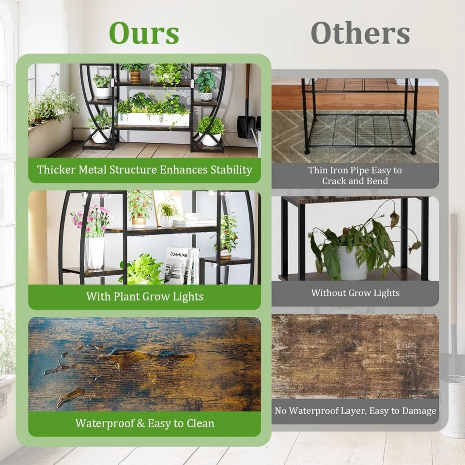 Durable Tall Plant Stand This garden flower stand is constructed from heavy metal iron frame with strong welding for durability and reliability, anti-deformation, powder coating prevent rusts, the shelves are MDF board, waterproof and extremely versatile, anti-cracking and no warping, premium in quality, anti-tip anchors kits are included to add extra stability without falling, ensure the stand is safe during use, assembly was a breeze, with clear instructions provided.