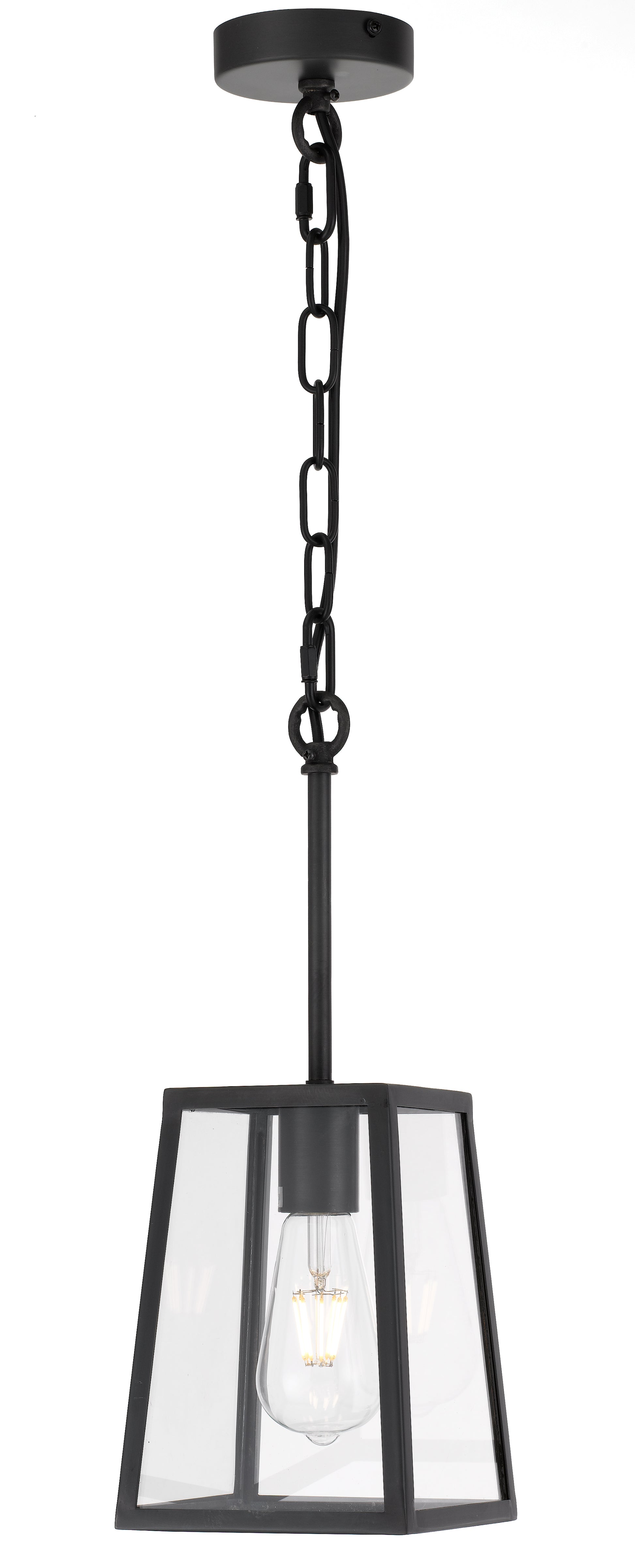 The CANTENA PE15 pendant light features a sleek black finish paired with a clear glass shade, creating a striking modern look. Equipped with a 210mm rod and a 1-meter chain, it offers flexible hanging options ideal for kitchen islands, dining rooms, or contemporary living areas. Rated IP43, it provides reliable indoor performance with a minimalist aesthetic.