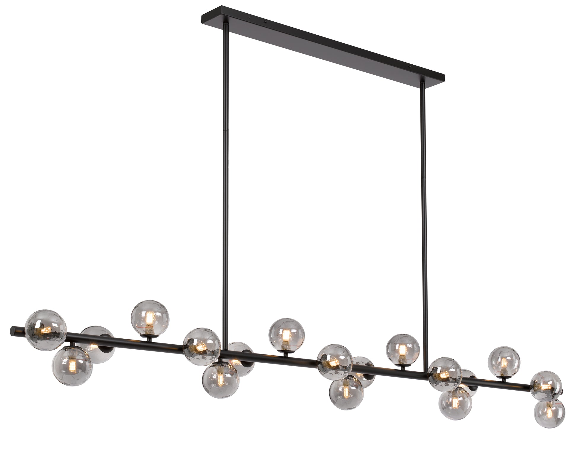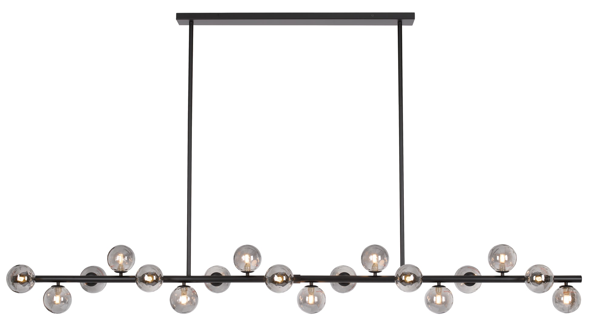 MORAN PE18-BKSM 18-Light Linear Pendant in Black with Smoke Glass