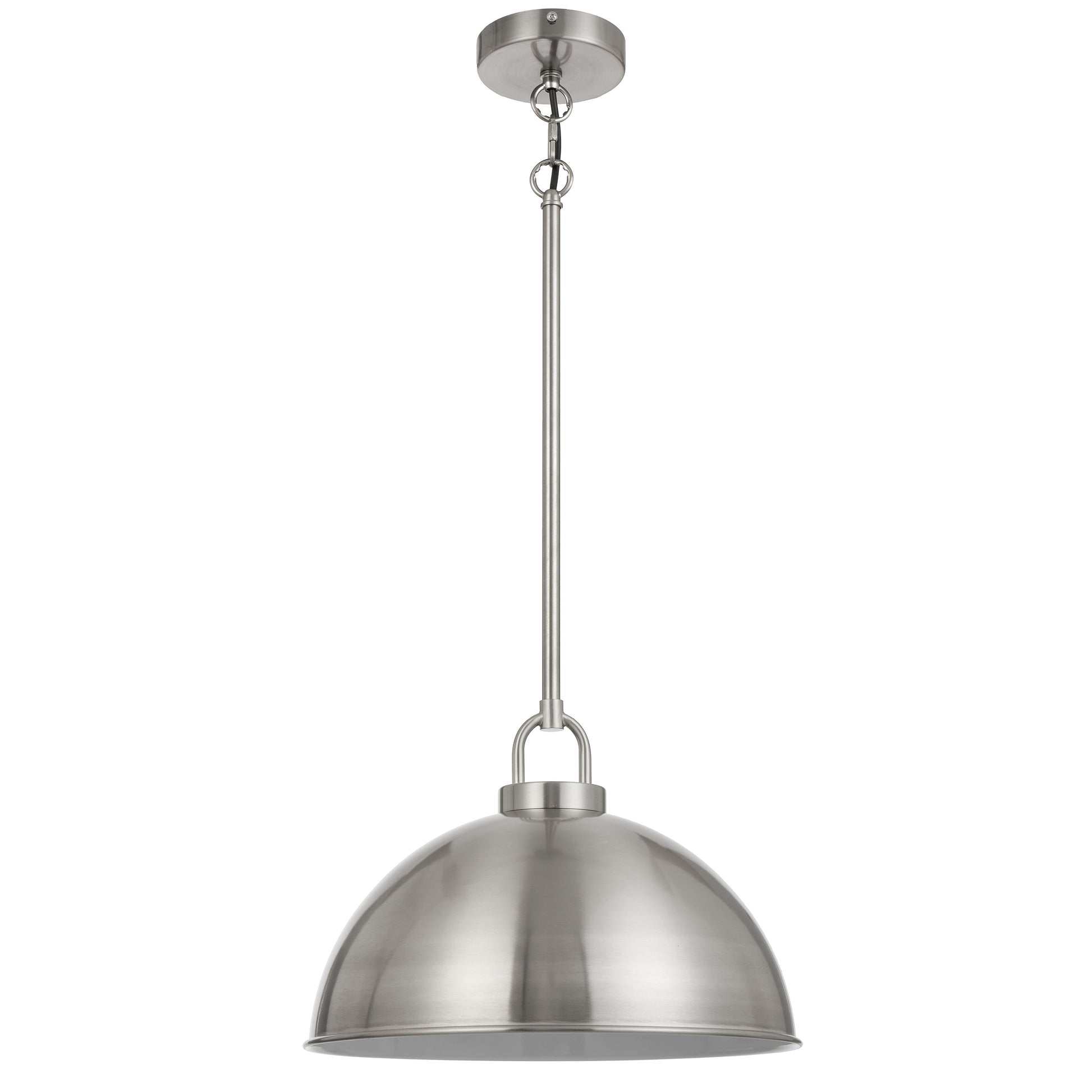 The EMERSON PE35-NK pendant light combines a clean, contemporary profile with a sophisticated brushed nickel finish. Ideal for kitchen islands, dining rooms, or loft-style interiors, this larger pendant offers a perfect mix of form and function. Its understated metallic sheen and minimalist dome design create a timeless focal point in both residential and commercial spaces.