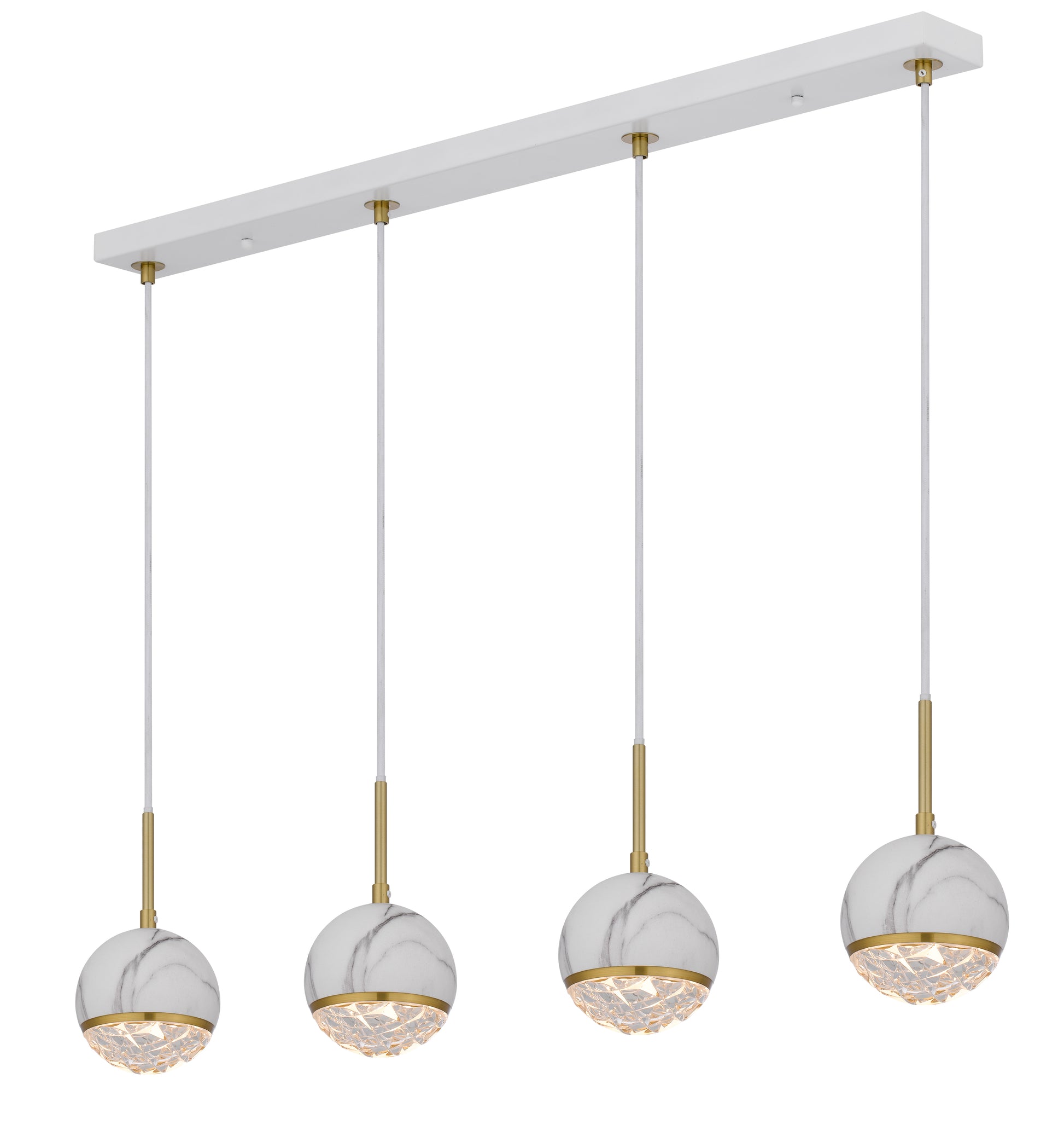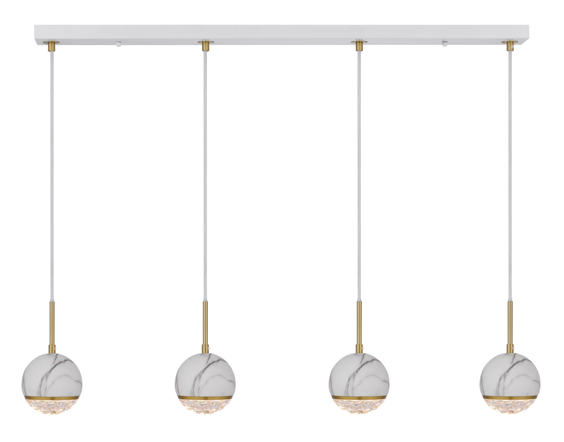 ONETA PE04-WHCL 4-Light Pendant in White Marble Look with Clear Glass Shades