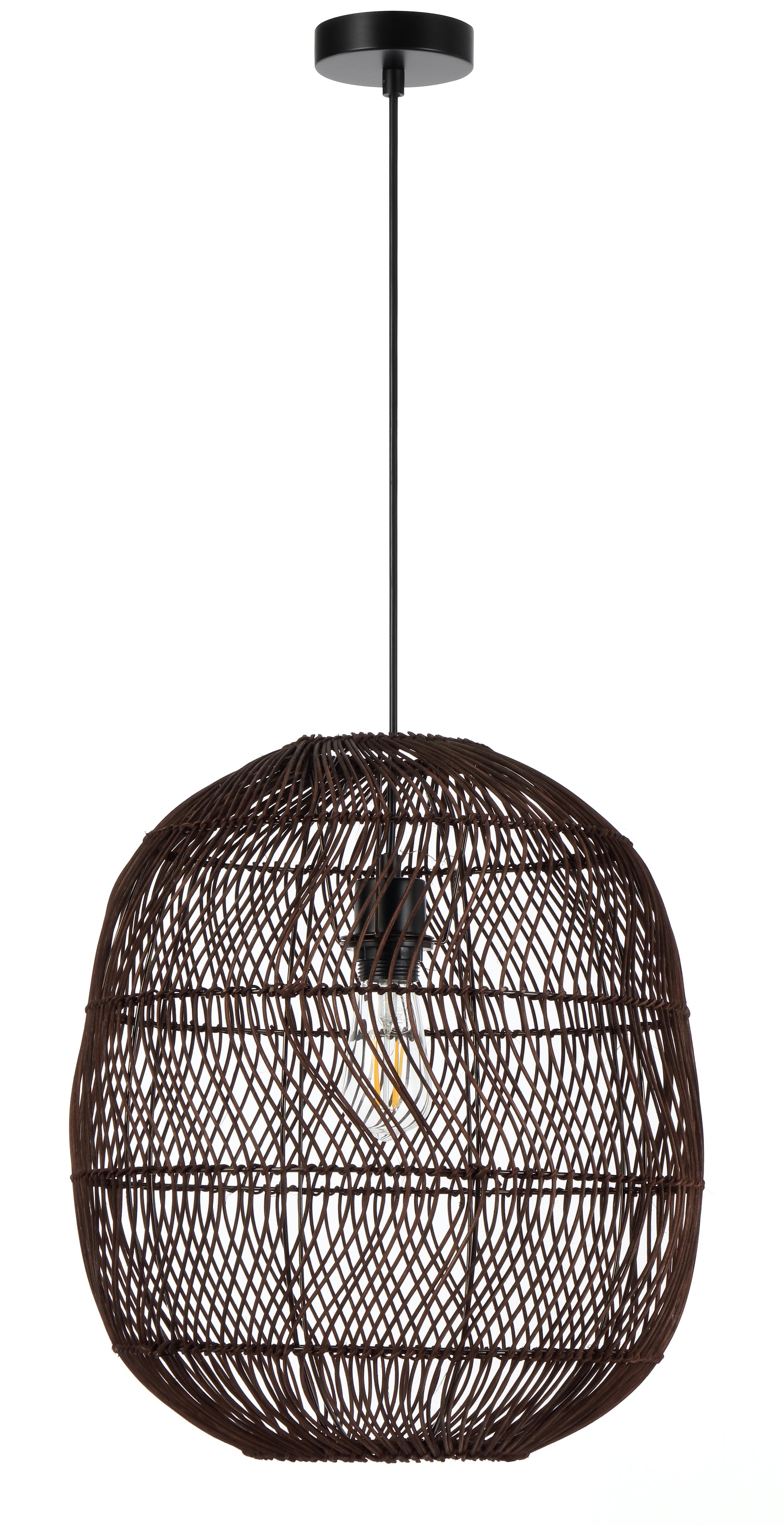 The RANA PE40-BRN pendant showcases a warm brown rattan shade that adds natural texture and contemporary elegance to any room. Measuring 400mm in diameter and 430mm in height, it is perfect for kitchens, dining areas, or living spaces seeking a cozy, modern vibe. The pendant uses one E27 globe (not included) for flexible lighting.