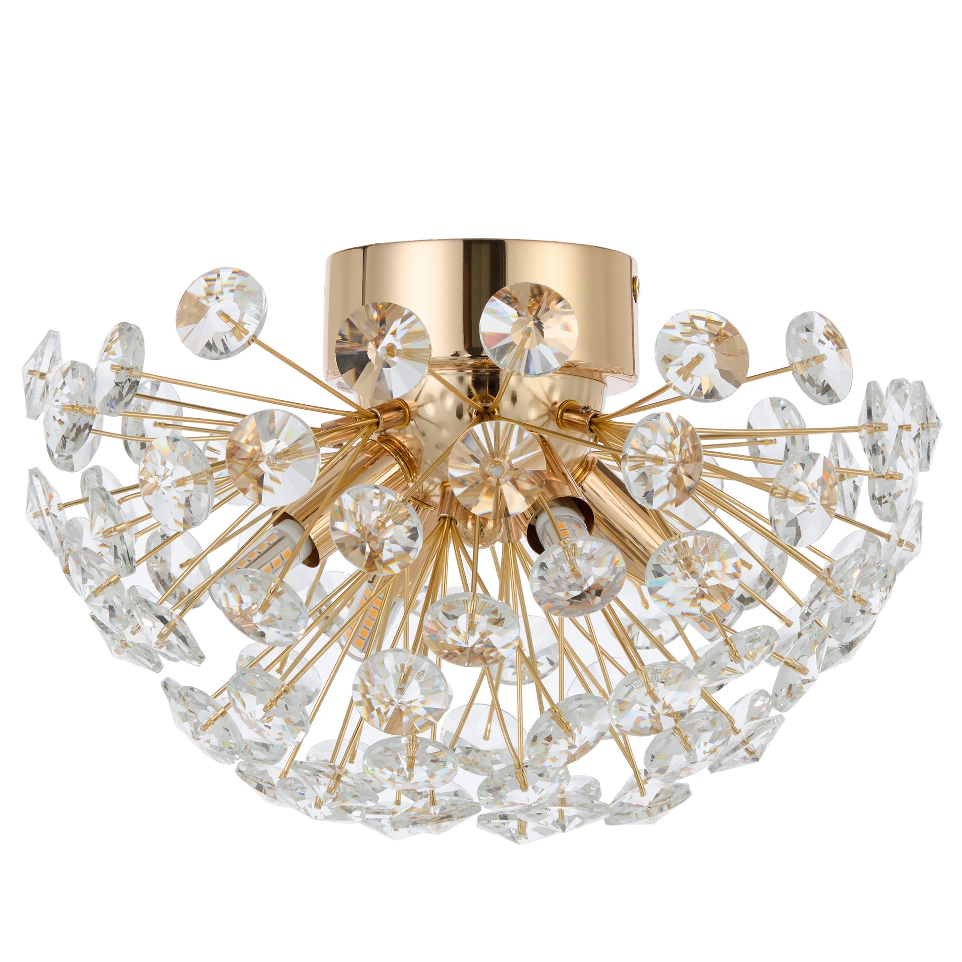 The LERIDA CTC4-GD is an elegant 4-light pendant featuring a gold finish complemented by clear crystal details. With a 30cm diameter and 190mm height, this pendant is perfect for adding a modern and luxurious touch to dining rooms, kitchens, or living spaces. It uses four G9 bulbs (not included) to provide both functional and decorative lighting.