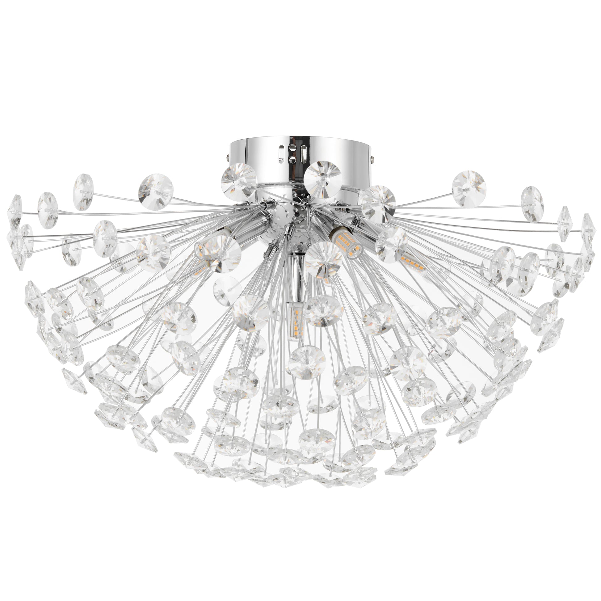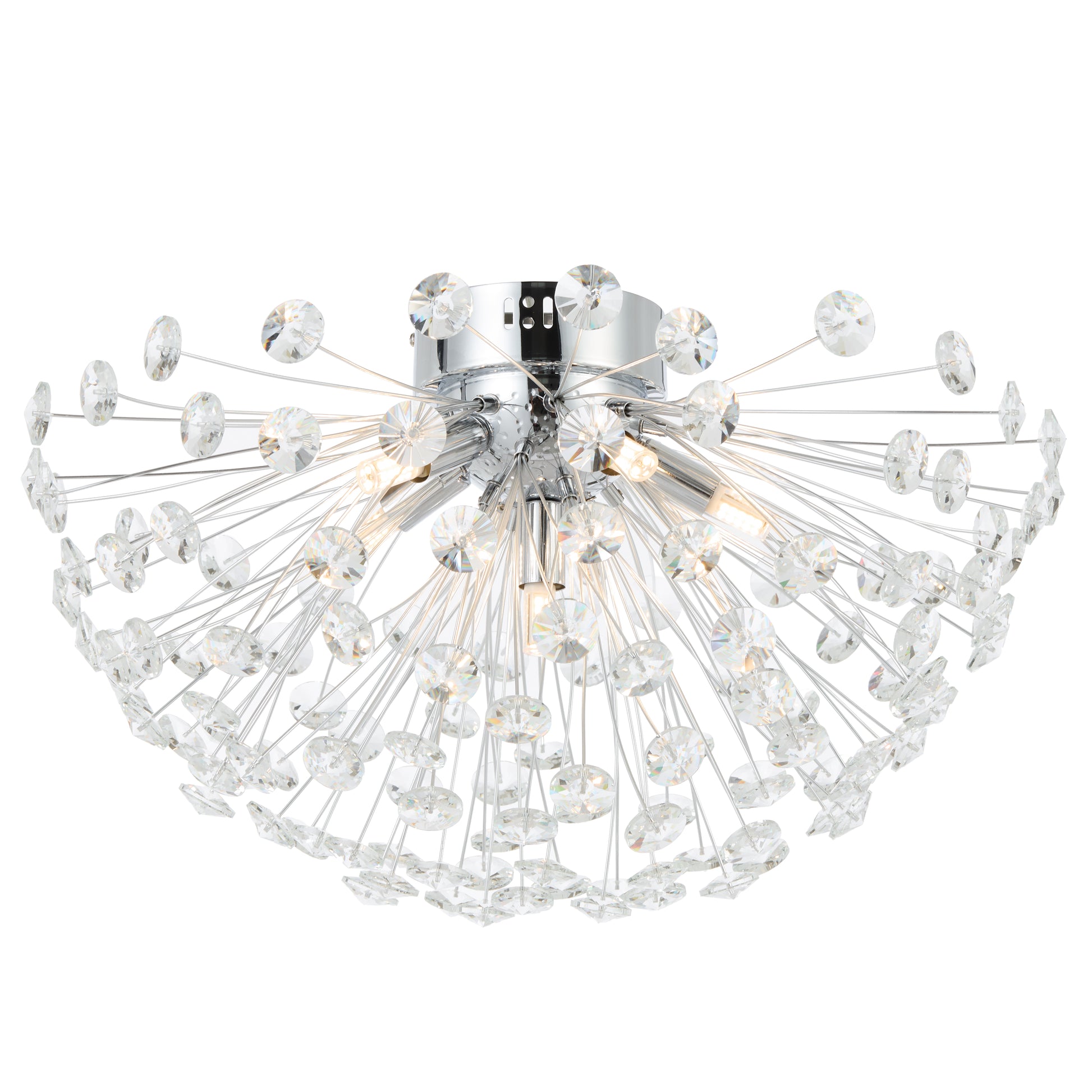 The LERIDA CTC6-CH pendant features a sleek chrome finish with clear crystal accents. With a 50cm diameter and 190mm height, this 6-light pendant is designed to enhance modern dining rooms, kitchens, or living areas with elegant and minimalist lighting. It accommodates six G9 bulbs (not included) for versatile illumination.