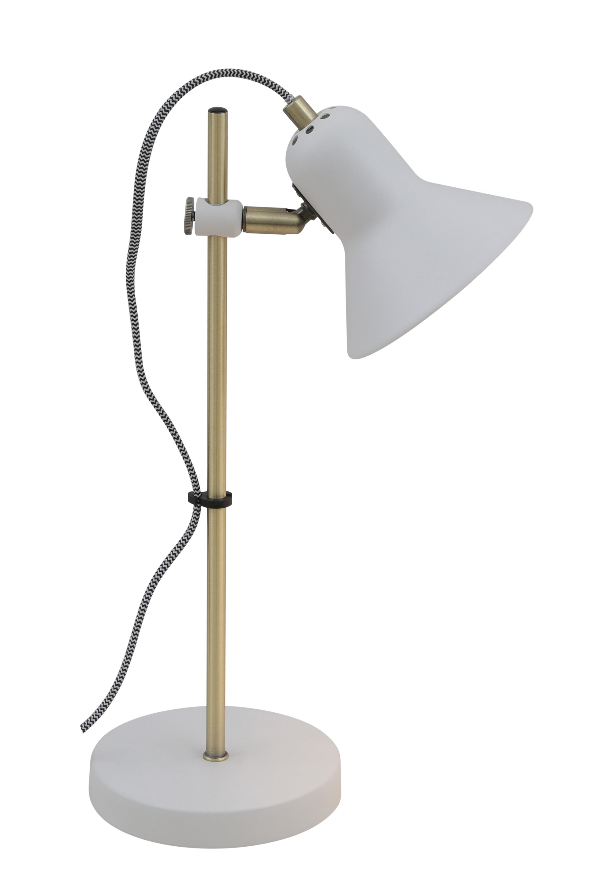The CORELLI TL-WHAB features a clean white finish beautifully contrasted by antique brass detailing, creating a fresh and refined look. Perfect for bedside tables, workspaces, or reading corners, this table lamp delivers focused lighting while enhancing your décor with its subtle vintage touch and minimalist silhouette.