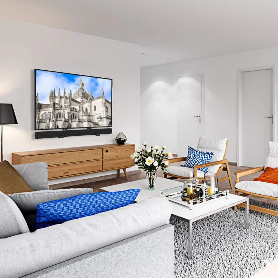 Secures your soundbar above or below a wall mounted TV, full motion TV mount.